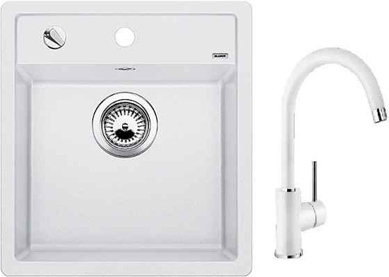 BLANCO SET DALAGO 5 + bateria kuchenna MIDA, biały BLANCO DALAGO 5 Silgranit® zlewozmywak biały z korkiem automatycznym 517160 Prosty kształt - maksymalna pojemność. Wymiary zewnętrzne: 505 x 500 mm Wycięcie w blacie: 495 x 490 mm Wymiary komór: 445 x 350 x 190 mm Typ : 1-komorowy Minimalna podbudowa: 50 cm Materiał: SILGRANIT® PuraDur® II Zlewozmywak wpuszczany w blat. Model dostępny również w wersji na równi z blatem. Cena obejmuje: - zawór 3,5 cala z sitkiem - zlew posiada kompletny syfon i odpływy - korek automatyczny BLANCO MIDA bateria kuchenna biala 519418 Elastyczne przewody przyłączeniowe o długości 350 mm i nakrętka 3/8"; gwarantują szybki i pewny montaż. Opatentowany regulator strumienia redukuje osadzanie się kamienia na główce baterii. Wyposażona w uszczelki ceramiczne. Płyta usztywniająca zwiększa stabilność baterii przy montażu ze zlewozmywakami stalowymi. Wysoka wylewka ułatwia napełnianie garnków i wazonów Typ: jednouchwytowa-mieszakowa/wysokociśnieniowa Wykonanie korpusu: biała (wygląd Silgranitu) Wysokość: 327 mm Obrót wylewki: 360° Średnica otworu montażowego: 35 mm Woda jest najważniejszym produktem spożywczym. Należy o tym pamiętać przy zakupie baterii kuchennej. Tylko wysokiej jakości materiały i certyfikowane produkty zapewniają maksymalne bezpieczeństwo użytkowania i ochronę Państwa zdrowia. Baterie BLANCO urzekają wspaniałym wykonaniem, najwyższej jakości materiałami i fascynującym wzornictwem. Już od 1925 roku BLANCO produkuje wysokiej jakości wyposażenie kuchenne.BLANCO - jeszcze większy komfort w Państwa kuchni. Urzekają wspaniałym wykonaniem, najwyższej jakości materiałami i fascynującym wzornictwem. Już od 1925 roku BLANCO produkuje wysokiej jakości wyposażenie kuchenne. Zlewozmywaki BLANCO z kompozytu SILGRANIT urzekają eleganckimi, pięknymi kolorami i atrakcyjnym wzornictwem. Silgranit składa się w 80% z naturalnego granitu. Granit w połączeniu z akrylem, ceramiką i kolorowym pigmentem uzyskuje swoje niezrównane właściwości. Kamienno-jedwabista, jednolita powierzchnia jest niezwykle przyjemna w dotyku. Dzięki doskonałym właściwościom materiału SILGRANIT jest wytrzymały i łatwy w utrzymaniu czystości. Zalety kompozytu SILGRANIT: - wyjątkowa łatwość pielęgnacji - duża wytrzymałość - przypominający w dotyku kamień - niespotykana odporność na zarysowania - wysoka wytrzymałość na pęknięcia - odporność na wysokie temperatury do 280 °C -100% neutralność w kontakcie z żywnością - 100 % odporność na kwasy występujące w gospodarstwie domowym - 100 % odporność na światło słoneczne Szeroka paleta barw zlewozmywaków o jednakowej strukturze we wszystkich kolorach zapewnia idealne dopasowanie baterii BLANCO do zlewozmywaka.