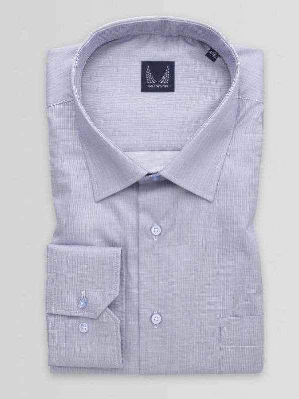 Błękitna klasyczna koszula w drobny prążek z klasycznym kołnierzykiem, 100% bawełny