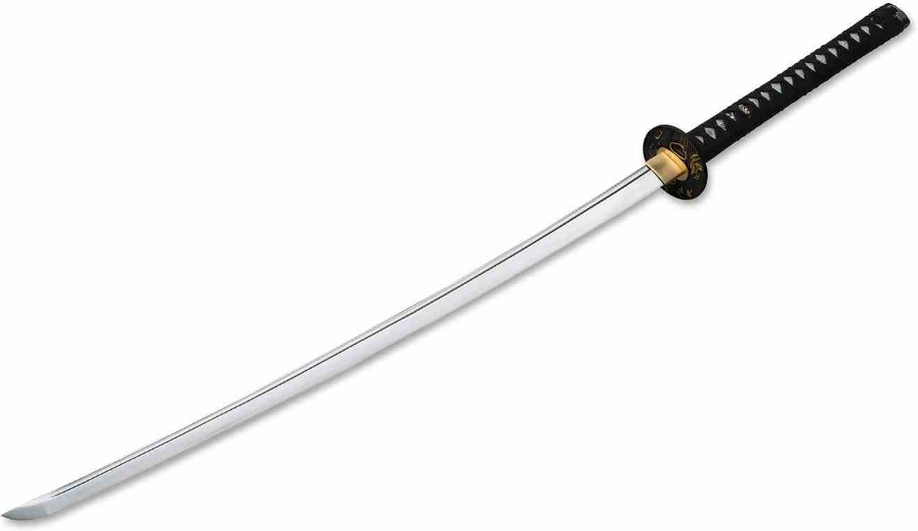 Opis Magnum Akito to funkcjonalny miecz, idealny do ćwiczeń kata, iaito oraz tameshigiri (testów cięcia). Ostrze wykonane z hartowanej gliny stali węglowej 1045, z autentycznym hamonem, zapewnia doskonałą jakość i wytrzymałość. Konstrukcja miecza jest solidna, z pełnym trzpieniem ostrza sięgającym prawie końca rękojeści, zabezpieczonym dwoma mekugis. Miecz Akito zawiera również lakierowaną, drewnianą pochwę z tradycyjnymi elementami Kurigata i Shito-Dome, co czyni go idealnym narzędziem dla każdego entuzjasty sztuk walki. Parametry Typ: Funktionsschwert Grawerunek: Nie Marka: Magnum Długość całkowita: 102,00 cm Długość ostrza: 72,50 cm Grubość ostrza: 7,60 mm Waga: 1120,00 g Stal ostrza: Stal węglowa Rękojeść: Drewno Kraj produkcji: Azja Kolor: Czarny Kolor ostrza: Niewykończone Pochwa: Drewno Numer produktu: 05ZS9126