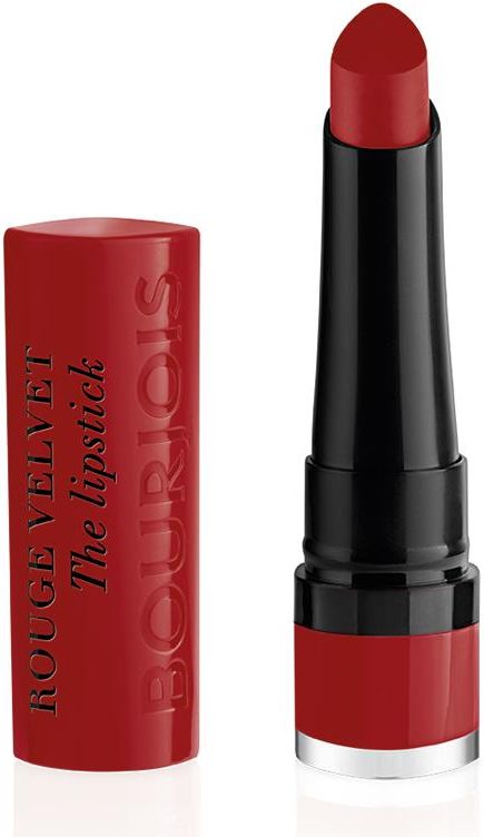 Bourjois Rouge Velvet - szminka do ust Trwała szminka o intensywnym odcieniu, z pięknym, matowym wykończeniem. Pragniesz niezwykłych efektów dzięki wyrazistej, matowej pomadce, która się nie rozmazuje? Poznaj zachwycającą, trwałą szminkę Bourjois Rouge Velvet, która nigdy nie wysuszy Twoich ust! Sekret jej luksusowej formuły to kompleks nawilżający, który zawiera nawilżające woski, lekkie olejki oraz intensywne pigmenty, które zapewniają nieodparty, zachwycająco aksamitny efekt. Kiedy szukasz precyzyjnej pomadki o intensywnym, matowym kolorze, która jest lekka i długo utrzymuje się na ustach, musisz wiedzieć, że już jedna warstwa szminki Rouge Velvet nadaje Twoim ustom piękny wygląd nawet przez 24 godziny. Intensywny kolor za jednym pociągnięciem, z precyzyjnym i nieskazitelnym wykończeniem – szminka Rouge Edition Velvet to niezbędny dodatek do Twojej kolekcji kosmetyków do makijażu! Najważniejsze cechy: wzbogacona nawilżającymi woskami, lekkimi olejkami i intensywnymi pigmentami, które zapewniają aksamitny efekt i głębię koloru nie wysusza ust, ale sprawia, że stają się gładkie i ponętne kształt łzy umożliwia perfekcyjną aplikację już za jednym pociągnięciem nieskazitelny efekt, który utrzymuje się do 24 godzin