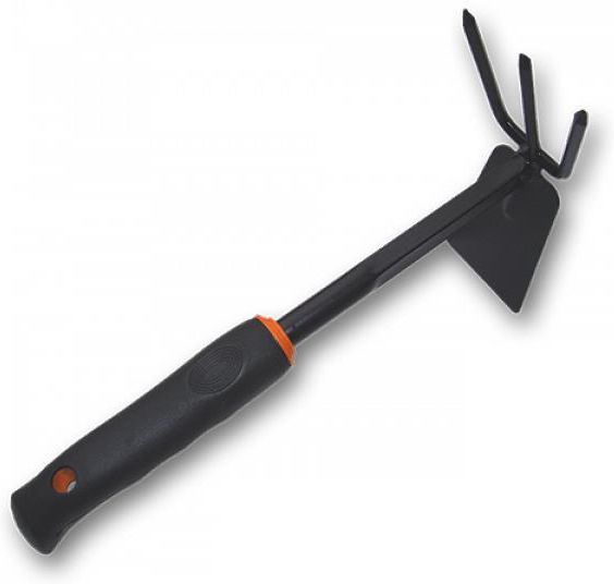 Grabki + motyczka z serii "DE LUXE" czyli małych narzędzi ręcznych do prac w ogródku. Cechy: Wykonane z wysokiej jakości stali, wyposażone w ergonomiczny miękki uchwyt Do okopywania, pielenia, napowietrzania gleby oraz pielęgnacji gęsto rosnących roślin Szerokość robocza: 7 cm