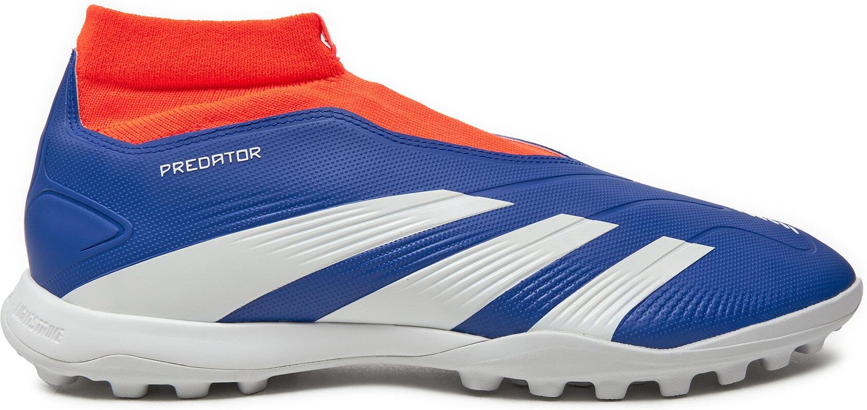 Buty Adidas Predator League LL TF IF6385 r. 39 1/3 Buty piłkarskie adidas Predator przeznaczone są dla piłkarzy, którzy mkną niczym pocisk na nawierzchniach ze sztuczną nawierzchnią typu orlik. Bezsznurowa syntetyczna cholewka tworzy teksturowaną powierzchnię strefy uderzenia pozwalającej na naturalne przejęcie kontroli na boisku. Tłoczone elementy Strikescale na wewnętrznym boku stopy w połączeniu z miękkim językiem zapewnią dodatkowe wsparcie przy każdym podaniu i strzale. Elastyczny kołnierz do kostki zapewnia dodatkowe wsparcie i komfort, dopasowując się do indywidualnego kształtu stopy. Rodzaj podeszwy: TF (Turf) - buty przeznaczone do gry na orlikach. Podeszwy TF charakteryzują się niewielkimi wypustkami umieszczonymi blisko siebie. BUTY Z OPAKOWANIU ZASTĘPCZYM