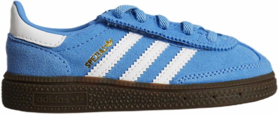 Sneakersy dziecięce Adidas Handball Spezial Comfort Closure Elastic Lace Kids Niebieskie Adidas Handball Spezial Comfort Closure Elastic Lace Kids to klasyczne buty sportowe stworzone z myślą o najmłodszych. Model JI2900 łączy ponadczasowy design z wygodą i funkcjonalnością, idealnie dopasowując się do aktywnego stylu życia dziecka. Giętka cholewka została wykonana z wysokiej jakości zamszu, który jest jednocześnie miękki i elastyczny, zapewniając komfort oraz dopasowanie do stopy. Gumowa podeszwa zewnętrzna gwarantuje przyczepność na różnych powierzchniach, co zwiększa stabilność podczas chodzenia, biegania czy zabawy. Miękka syntetyczna wyściółka redukuje ryzyko otarć, oferując wygodę noszenia przez cały dzień. Zastosowanie elastycznych sznurowadeł pozwala na łatwe zakładanie butów, ponieważ umożliwiają one rozciąganie kołnierza, co ułatwia wsunięcie stopy. Dodatkowe zapięcie na rzep pozwala na jeszcze lepsze dopasowanie buta do stopy, zwiększając komfort i stabilność podczas codziennego użytkowania. Model wyróżniają charakterystyczne trzy paski oraz logo Spezial Trefoil, które podkreślają sportowe dziedzictwo marki Adidas. Kolorystyka w odcieniach niebieskiego nadaje butom wyjątkowego charakteru, doskonale komponując się z różnorodnymi stylizacjami dziecięcymi. Specyfikacja Marka: Adidas Model: Handball Spezial Comfort Closure Elastic Lace Kids Rodzaj: Dziecięce Materiał cholewki: Skóra zamszowa Materiał podeszwy: Guma Kolor: Niebieski Kod producenta: JI2900