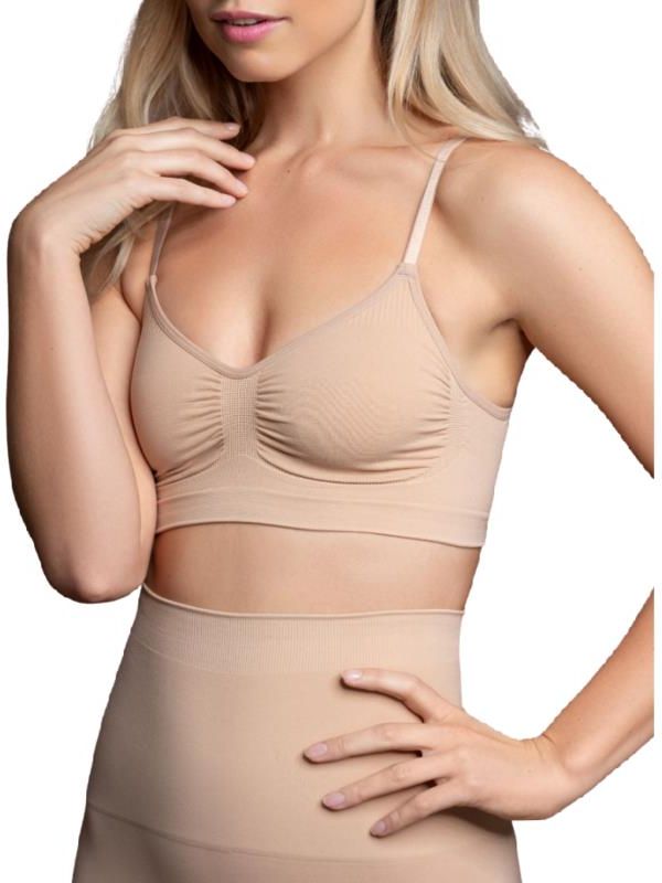BYE BRA - BEZSZWOWY BIUSTONOSZ KOLOR BEŻOWY Bezszwowy, gładki, modelujący biustonosz o sportowym kroju zapewnia niebywały komfort przez cały dzień oraz podtrzymuje kształt biustu. Idealny podczas uprawiania sportu. Skład: 90% poliamid 10% elastan Bielizna modelująca Średnia kontrola Gładki Idealny komfort Skład: 90% poliamid 10% elastan