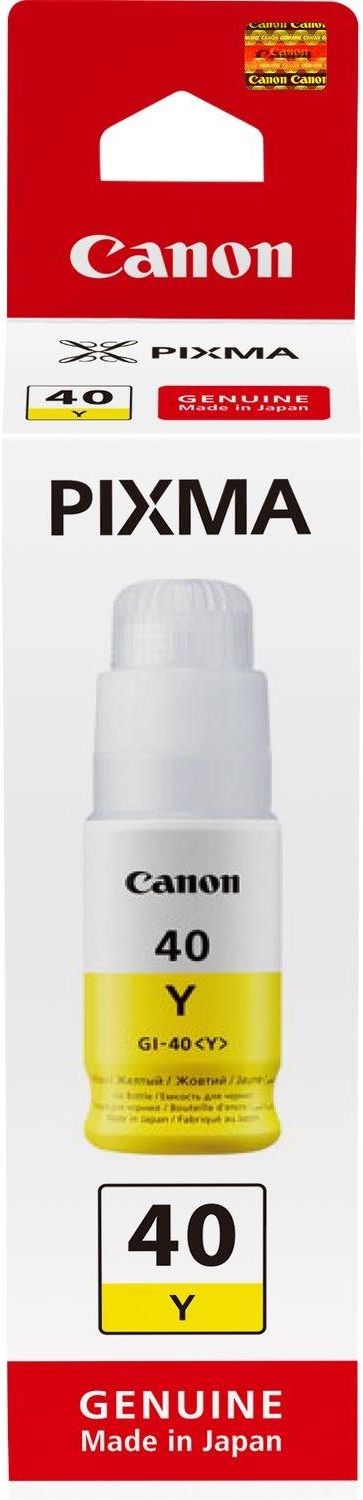 Canon GI-40Y  Żółty Sztywna butelka z wydajnym, żółtym atramentem umożliwia łatwe napełnianie drukarek z uzupełnianymi zbiornikami bez robienia bałaganu Wydajny atrament obniżający koszt zadrukowania pojedynczej strony Pełny zestaw wydajnych atramentów pozwala na zadrukowanie nawet 7700 stron …