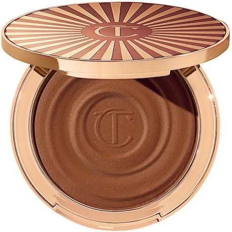 Beautiful Skin Sun-Kissed Glow Bronzer od Charlotte Tilbury to bajecznie kremowy bronzer, który natychmiastowo zapewnia efekt muśniętej słońcem skóry i piękny, zdrowy, plażowy blask każdego dnia! Zawiera nawilżający kwas hialuronowy + prowitaminę D3, która poprawia wygląd skóry za każdym użyciem! Rezultaty potwierdzone klinicznie: • Do 15 godzin trwałości! • Formuła odporna na pot + wilgoć! • Skóra staje się 2x bardziej nawilżona w ciągu 1 godziny* *Testy przeprowadzone na grupie 15 osób Dostępne 4 odcienie.