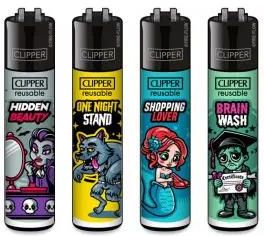 Zapalniczka Clipper wzór BRAIN WASH - 4 wzory do wyboru - wyjmowany ubijak - wymienny krzemień