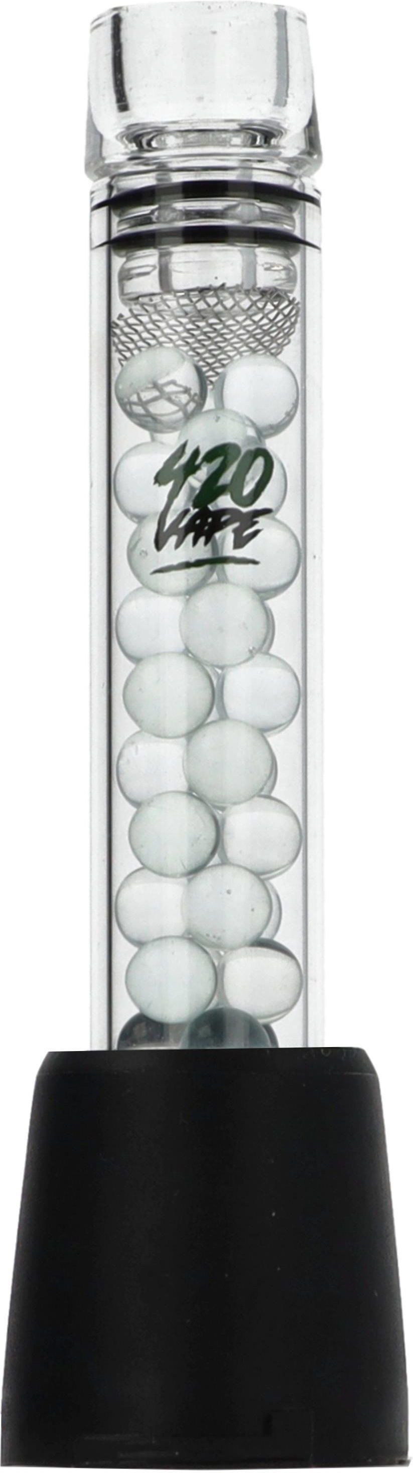 Cool JET - Ustnik chłodzący do waporyzatora Mighty+/Crafty+ Ustnik chłodzący Cool JET do waporyzatora Mighty+/Crafty+ Storz&Bickel. Wykonany z odpornego borokrzemowego szkła. Zaopatrzony w kulki schładzające parę. Cool JET to bardzo przydatne akcesorium jeśli lubisz waporyzować na wyższych temperaturach. Kulki skutecznie wydłużają ścieżkę pary, a zamknięte we wnętrzu sitko ogranicza przedostawaniu się drobinek suszu do ust. Ustnik zaopatrzony jest w silikonowy adapter, który dedykowany jest do Mighty+/Crafty+. Całość sygnowana jest logiem 420VAPE na korpusie. Górna część ustnika zamykana jest na szklaną zatyczkę zabezpieczoną uszczelkami O-Ring. Aby wyczyścić ustnik, wystarczy, że wyciągniesz zatyczkę i usuniesz ze środka szklane kulki i sitko. Cechy ustnika Cool Jet kulki chłodzące parę metalowe sitko szklana zatyczka z gumkami o-ring pasuje do Mighty/Mighty+ Crafty/Crafty+ Wymiary ustnika długość samego ustnika: 9.5 cm długość ustnika z adapterem: 10 cm W zestawie otrzymujesz szklany ustnik z kulkami Cool Jet do waporyzatora Mighty/Crafty adapter