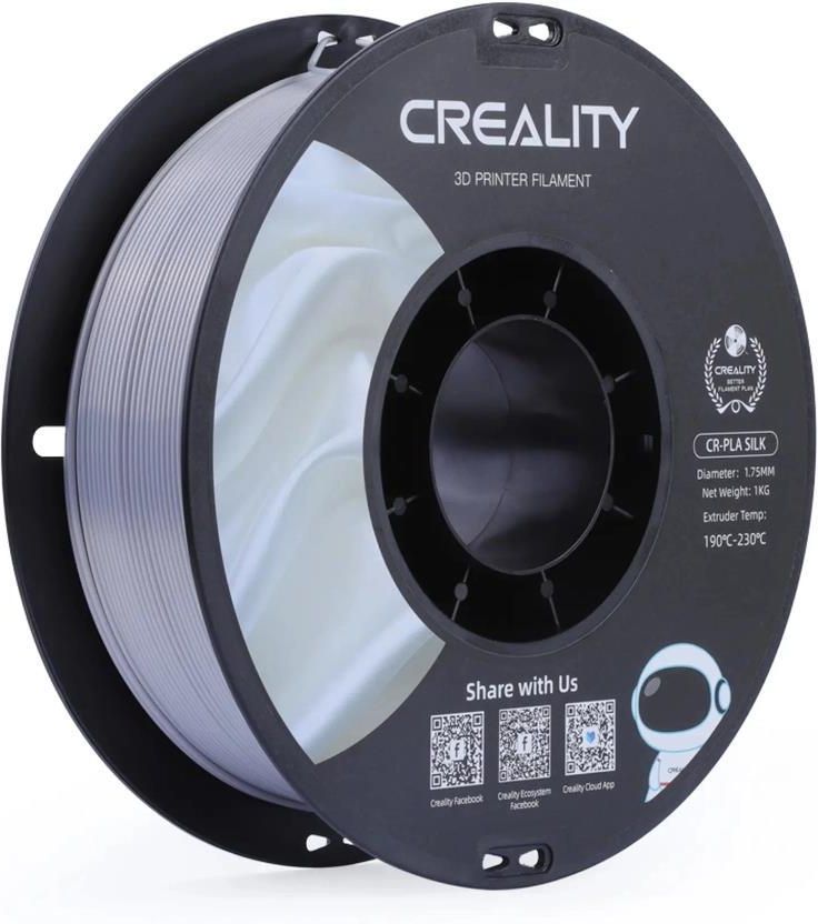 Filament PLA Silk Creality 3D 1,75 mm 1000 g srebrny 1kg Silver na szpuli Filament CR-Silk marki Creality wyróżnia się metalicznym, eleganckim połyskiem, dzięki czemu przyciąga wzrok i doskonale nadaje się do drukowania figurek, dekoracji, a nawet biżuterii. Cechuje go także imponująca wytrzymałość …