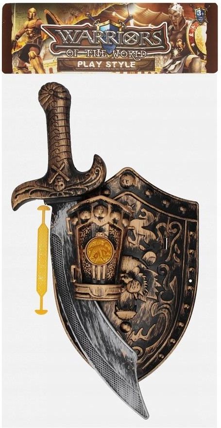 Mega Creative Zestaw Rycerski 545315 Odwaga, honor, szlachetna postawa to cechy prawdziwego rycerza, z zestawem rycerskim od MEGA CREATIVE Twoja pociecha będzie mogła odkryć te wszystkie cechy u siebie Zalety produktu: zestawy wykonany z plastiku, idealne uzupełnienie stroju dla rycerza lub króla, rozwijanie wyobraźni poprzez różne scenariusze zabawy, rozwijanie pasji. ! Zawartość zestawu: 1 x miecz, 2x tarcza. wymiary produktu (dł. x wys. x gł.)[cm]: miecz- 14x47x3, wymiar opakowania (dł. x wys. x gł.) [cm]: 22x52x4, waga produktu bez opakowania [kg]: 0,16 kg, waga produktu w opakowaniu [kg]: 0,18 kg, nie wymaga zasilania bateriami. Zestaw przeznaczony dla dzieci w wieku: 3+