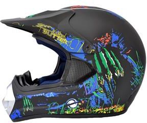 Kask moto crossowy WL-801 Monster JuniorCechy produktu:Lakierowana powłoka Antyalergiczny wyjmowany wkład - przystosowany do prania Grafika odporna na promieniowanie UV Szybki system zapięcia paska Kask posiada certyfikat CEKolor: Czarny MatowyRozmiar: XLStan: Nowy
