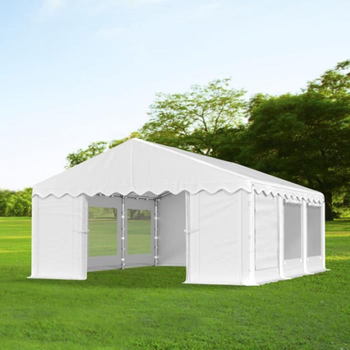 Namiot imprezowy o solidnej konstrukcji. Łatwy w montażu. Dzięki temu oprócz szybkiego rozkładania, namiot bardzo łatwo można przenosić w dowolne miejsce. Poszycie sprawdzi się świetnie podczas organizacji każdego plenerowego eventu, bankietu czy festynu. Stanowi idealną ochronę cateringu oraz zaproszonych gości podczas wesela, komunii, pikników oraz innych imprez okolicznościowych. Swoje zastosowanie znajdzie także jako altana, namiot ogrodowy bądź tarasowy. Namiot można używać również jako powierzchnie handlowe oraz dodatkowe miejsce w swoim lokalu.