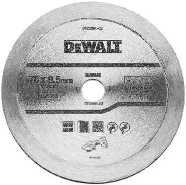 Diamentowa tarcza do cięcia płytek ceramicznych DT20591 tarcza przeznaczona do cięcia na sucho i mokro wszelkiego rodzaju płytek ceramicznych tarcza DT20591 aby prawidłowo cięła musi pracować tylko w jednym wyznaczonym kierunku przeznaczona jest do pracy ze szlifierką DCS438 Dane techniczne średnica tarczy: 76 mm średnica otworu: 9,5 mm tarcza kierunkowa: tak maksymalna prędkość obrotowa: 20300 obr/min