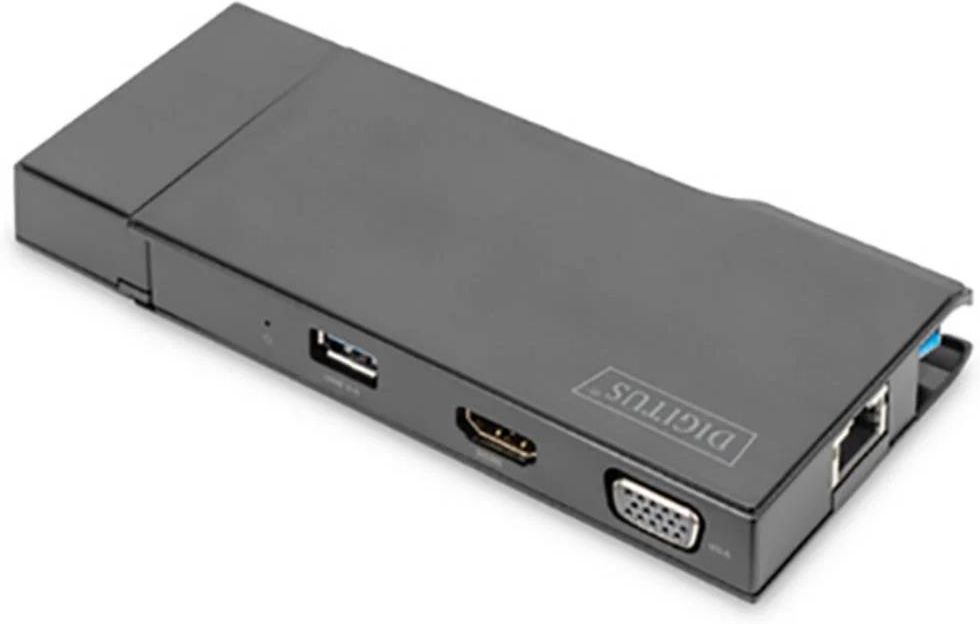 ✔️ Digitus Uniwersalna stacja dokująca, USB 3.0, do użytku w podróży ✔️ Użytkownik zawsze dysponuje najważniejszymi interfejsami – można rozszerzyć funkcjonalność notebooka o 7 dodatkowych złączy za pośrednictwem tylko jednego portu USB-3.0 - Obsługa QHD (50 Hz), rozdzielczość 2560 x 1440@50Hz Auflösung (HDMI) - 2 x złącze wideo (HDMI, VGA) – wyjście sygnału wideo z maks. rozdzielczością 2560 x 1140@50Hz (HDMI) - Obsługa dwóch wyświetlaczy w systemie operacyjnym Windows – tryb kopii lustrzanej i rozszerzenia ekranu monitora - Rozdzielczość przy obsłudze dwóch monitorów: HDMI do 2048 x 1152@60Hz, VGA bis zu 1920 x 1200@60Hz - 2 x port USB 3.0 do transmisji danych z szybkością SuperSpeed (5 Gbps) - 1 x złącze Gigabit Ethernet – do przewodowego podłączenia notebooka do sieci - 2 x czytnik kart (microSD/SD) - Wymiary: dł. 12,0 x szer. 5,5 x głęb. 2,0 cm - Wydajność wyjścia wideo zależy od karty graficznej notebooka i podłączonego monitora. Niektóre karty graficzne dysponują ograniczoną obsługą MST, natomiast niektóre monitory ograniczają dostępną rozdzielczość. Korzystając z uniwersalnej mobilnej stacji dokującej USB 3.0 marki DIGITUS®, użytkownik zawsze dysponuje najważniejszymi przyłączami. Stacja dokująca rozszerza funkcjonalność notebooka o siedem dodatkowych portów. Oferuje ona dwa interfejsy wideo (HDMI i VGA). Najwyższa obsługiwana rozdzielczość (HDMI): 2560 x 1140@50Hz. Ponadto zapewnia dwa złącza USB 3.0. Za pośrednictwem złącza Gigabit Ethernet można również podłączyć notebooka z siecią przewodowo. Całości dopełnia odłączany czytnik kart z 2 gniazdami na karty microSD, SD. Dzięki kompaktowym wymiarom, niewielkiej wadze i możliwości schowania kabla, stacja dokująca pasuje do każdej torby, dlatego jest idealnym rozwiązaniem do podróży. ✏️ Najważniejsze parametry techniczne: Nośnik danych - Zintegrowany czytnik kart: Tak Nośnik danych - Obsługiwane typy kart pamięci: MicroSD (TransFlash), SD Kamera - Kraj pochodzenia: Chiny Sieć - Przewodowa sieć LAN: Tak Sieć - Prędkość transferu danych przez Ethernet LAN: 1000 Mbit/s Porty i interfejsy - Interfejs hosta: USB 3.2 Gen 1 (3.1 Gen 1) Type-A Porty i interfejsy - Ilość portów USB 3.2 Gen 1 (3.1 Gen 1) Typu-A: 2 Porty i interfejsy - Technologia łączności: Przewodowa Porty i interfejsy - Ilość portów Ethernet LAN (RJ-45): 1 Porty i interfejsy - Liczba portów VGA (D-Sub): 1 Porty i interfejsy - Ilość portów HDMI: 1 Konstrukcja - Kolor produktu: Czarny Wydajność - Maksymalna rodzielczość cyfrowa: 3840 x 2160 px Ergonomia - Materiał obudowy: Plastik Porty We/Wy na tylnym panelu - Mikrofon: Nie Montaż - Liczba obsługiwanych wyświetlaczy: 2 Waga i rozmiary - Szerokość produktu: 55 mm Waga i rozmiary - Głębokość produktu: 20 mm Waga i rozmiary - Wysokość produktu: 120 mm Cechy - Obsługa funkcji Plug & Play: Tak Dane opakowania - Przewody: USB Typ-A do Micro-USB Typ-B Dane opakowania - Zawiera sterowniki: Tak Dane opakowania - Szerokość opakowania: 100 mm Dane opakowania - Głębokość opakowania: 220 mm Dane opakowania - Pojemność opakowania: 550 cm³ Dane opakowania - Waga wraz z opakowaniem: 241,667 g Dane logistyczne - Maska z numerem seryjnym: 84718000 Zawartość opakowania - Dołączone adaptery interfejsu: USB Typu-C męskie-USB Typu-A żeńskie Zawartość opakowania - Ilość na paczkę: 1 szt. Zawartość opakowania - Podręcznik użytkownika: Tak Klasyfikacja - Kod producenta: DA-70894 Klasyfikacja - EAN: 4016032480914 Klasyfikacja - ID Produktu: 99248390
