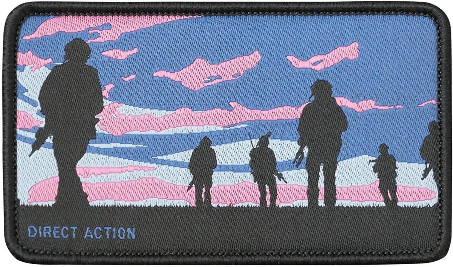 Haftowany patch z sylwetkami operatorów na tle zachodzącego słońca. Patch ma na odwrocie rzep, który pozwala na przyczepienie do sprzętu lub odzieży. Cechy: