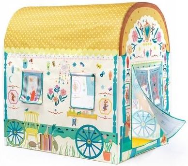 W sypialni, salonie lub ogrodzie, gdy jest ładna pogoda i nie pada deszcz, ten wspaniały domek z tkaniny w stylu boho stanie się miejscem zabaw Twojego dziecka, które może się tam ukryć, aby czytać lub bawić się. Prawdziwie przestronny i kolorowy, zachwyci dzieci kolorami. Domek posiada podłogę, okna i otwierane wejście. Domek z ładnymi ilustracjami: koła, krzesło, rośliny, fasady ozdobione kwiatami i małymi zwierzętami. Ta duża, kwiecista kryjówka jest idealnym placem zabaw dla dzieci. Domek bardzo łatwo rozłożyć lub złożyć oraz przechowywać w pudełku. Przestronny i jasny. Bardzo łatwy w montażu. Szybkie składanie i przechowywanie w pudełku. Trzy okna i płócienne drzwi, które otwierają się i zamykają. Trwała i łatwa w czyszczeniu włóknina. Tworzywo: włóknina -100% poliester, plastikowe rurki. W zestawie znajduje się obrazkowa instrukcja montażu. Pielęgnacja: Czyścić tylko powierzchniowo. Nie wybielać. Nie suszyć w suszarce bębnowej. Nie prasować. Nie prać chemicznie. Wiek +3 lata Wielkość domku po rozłożeniu wys.100 x dł.105 x szer.79 cm Wymiary opakowania 49 x 37 x 57 cm DJECO to znana i lubiana marka francuskich zabawek. Jest to firma z długoletnią tradycją, która oferuje ogromny wachlarz zabawek edukacyjnych: zabawki drewniane dla najmłodszych, super puzzle na każdy wiek, mnóstwo zestawów kreatywnych a także wspaniałe zestawy tematyczne do odgrywania ról. Zabawki Djeco charakteryzują się żywą kolorystyką, wysmakowanym francuskim wzornictwem, wysokimi wartościami edukacyjnymi i kreatywnymi. DJECO to również wspaniałe artykuły dekoracyjne do pokoju dziecka, czyli seria LITTLE BIG ROOM.