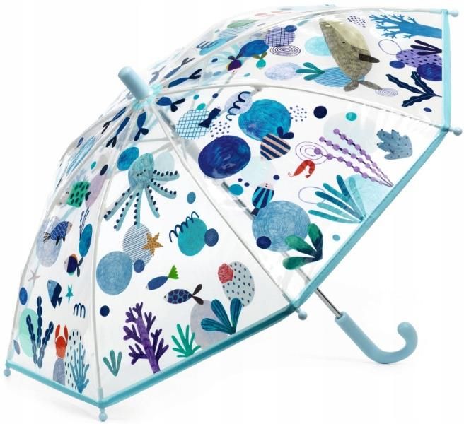 Parasol przeciwdeszczowy Djeco Morze Parasol z morskim motywem to parasol idealny na deszczowe dni! Mała, dziecięca parasolka marki Djeco urzeka i zachwyca - doskonała parasolka dla dzieci młodszych. Dziecięce łapki z łatwością sobie z nią poradzą. Baldachim parasola jest przeźroczysty, dzięki …