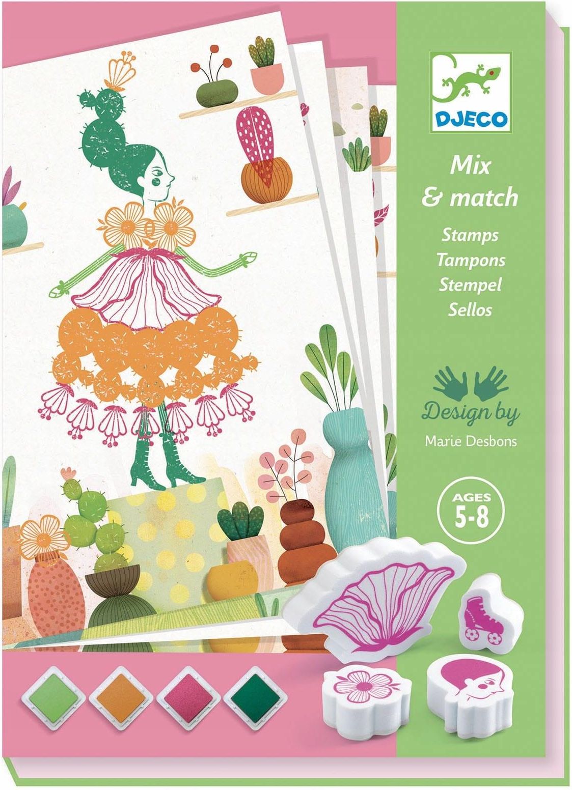Stwórzcie niesamowitą kolekcję modnych stylizacji inspirowanych światem przyrody! Zestaw artystyczny pieczątki dla dzieci Kwiatowe Dziewczyny od Djeco pozwala zaprojektować niepowtarzalne outfity dla dziewcząt w technice stemplowania. W komplecie znajduje się: aż 16 arkuszy z ilustracjami, 4 poduszki z tuszem, 14 stempli o różnych kształtach, instrukcja krok po kroku. Mała projektantka będzie zachwycona szerokim wyborem arkuszy do uzupełnienia wedle własnego uznania. Pomogą jej w tym łatwe do zmycia tusze; dostępne są one w kolorach takich jak: pomarańczowy, fuksjowy, w dwóch odcieniach zielonego. Do dyspozycji oddano również mnóstwo stempli, które pozwolą odcisnąć na kartce kształty w postaci m.in.: kaktusa, muszelki, liści czy bucików. Pieczątki dla dzieci Kwiatowe Dziewczyny Djeco to pomysł na kreatywne spędzanie czasu w domu. Bawić się nimi można samodzielnie lub z przyjaciółkami! Najważniejsze zalety produktu: zestaw artystyczny pieczątki dla dzieci z tuszem, możliwość stworzenia aż 16 niepowtarzalnych stylizacji, różnokolorowe poduszki z tuszem do odciskania, łatwy do zmycia tusz, duży wybór kształtów stempli do zabawy, tematyka życia w zgodzie z naturą, rozwój kreatywności, zmysłu artystycznego, motoryki małej oraz umiejętności koncentracji, do zabawy w pojedynkę lub z przyjaciółmi, dołączona instrukcja, renomowany producent, świetna cena. Wymiary arkusza z ilustracją do uzupełnienia: 15 x 21 cm Wymiary opakowania zestawu artystycznego pieczątki dla dzieci Kwiatowe Dziewczyny Djeco: 16,5 x 23 x 4 cm