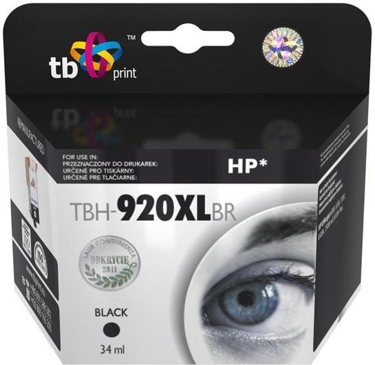 TB PRINT Tusz do HP OJ 6500 TBH-920XLBR BK ref. Rodzaj wkładu: Tusz Kolor: Czarny (black) Pojemność: 58 ml Wydajność (5% pokrycie): 1200 str. A4 Chip: Tak Liczba w opakowaniu jednostkowym: 1 Kompatybilność: HP Officejet 6000, 6500, 6500A, 7000, 7500, 7500A Kod oryginału: CD975AE Pasuje do: HP TB Print TBH-920XLBR 5901500501422