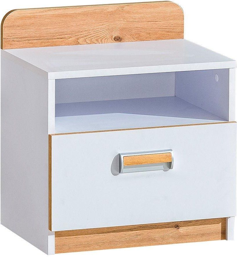 Szafka nocna doskonale sprawdzi się w pokoju młodzieżowym, dziecięcym czy sypialni. Funkcjonalna budowa łączy w sobie wygodę przechowywania z atrakcyjnym designem. Połączenie bieli z dekorem drewna nadaje meblowi lekkiego i jednocześnie przytulnego charakteru, dzięki czemu łatwo wkomponuje się w …