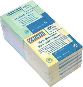 * karteczki samoprzylepne w różnych kolorach, idealne do pozostawienia wiadomości zarówno w biurze jak i domu * ilość karteczek: 12x100 w rozmiarze 76x76mm * gramatura: 70gsm ± 4% * możliwość przeklejania karteczek * klej usuwalny za pomocą wody * 12 sztuk w j.s. * mix kolorów (6 żółtych, 2 niebieskie, 2 różowe, 2 zielone)