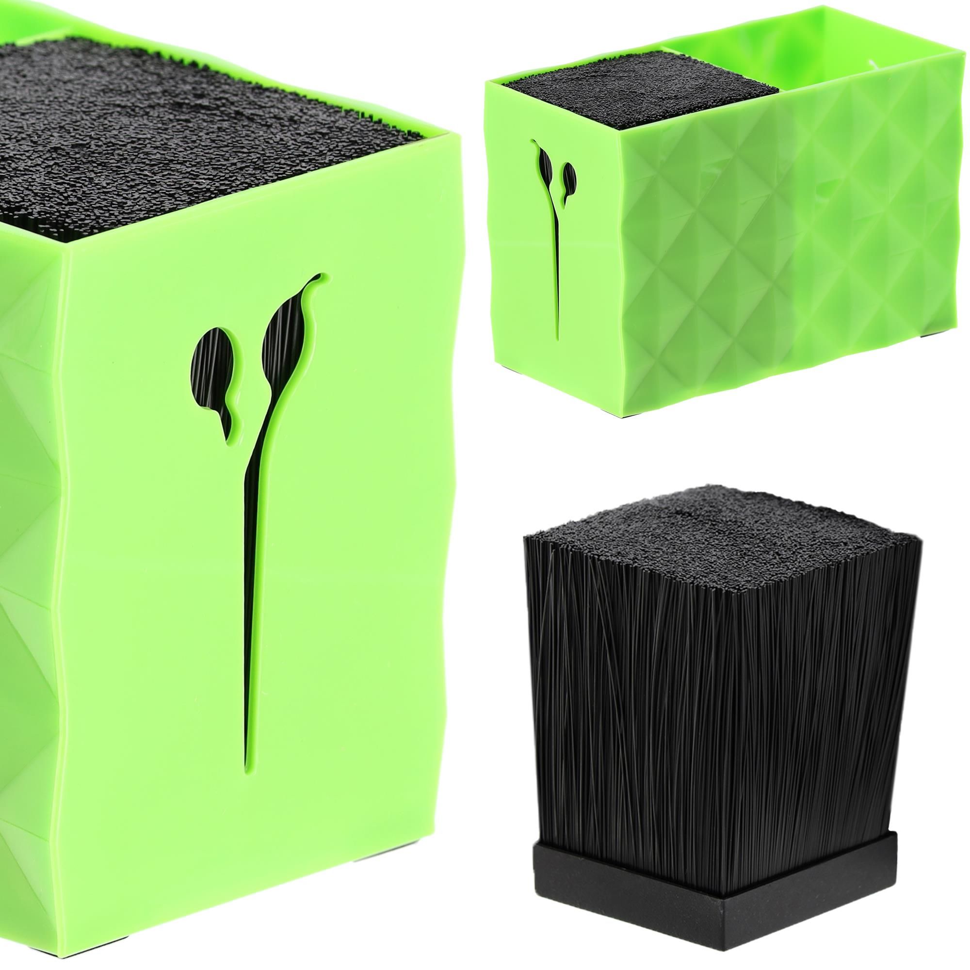 Organizer na nożyczki fryzjerskie zielony Oferujemy Państwu profesjonalny stojak na nożyczki, odpowiedni do każdego salonu fryzjerskiego. Organizer posiada gumki antypoślizgowe i jest stabilny. Atutem tego produktu jest to, że można włożyć nożyczki w każde miejsce w doniczce dzięki nylonowym włosom, które nie niszczą ramy nożyczek. Doniczka charakteryzuje się ciekawym designem, wykonana jest z dobrej jakości tworzywa. Wysokość: 18 CM