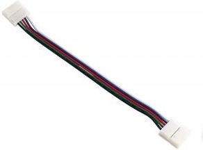 Dwustronna złączka do taśm LED RGBW 12mm Zadaniem złączki jest proste łączenie taśm, co dla wielu będzie o wiele wygodniejszym wariantem od lutowania. Jest to złączka typu "CLICK" - wystarczy umieścić taśmę w złącze i zacisnąć.Produkt ten dedykowany jest taśmom RGBW (paleta barw RGB + kolor biały) o szerokości laminatu 12 mm. Długość samego przewodu wynosi 150 mm.