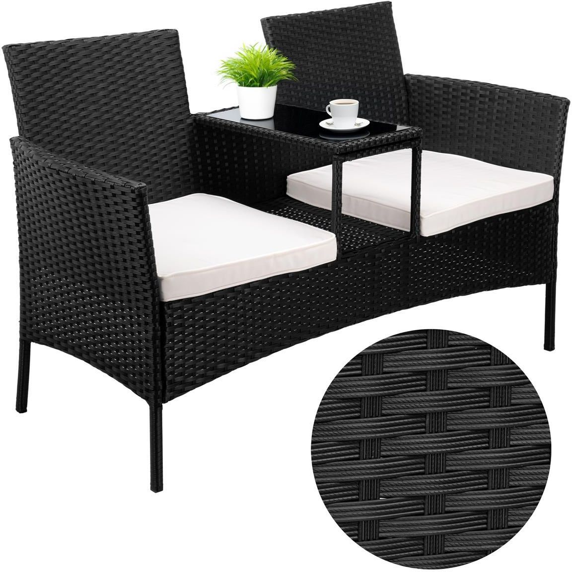 Ławka ogrodowa z technorattanu sofa CORDOBA czarna z beżowymi poduszkami ⭐️ Stabilna stalowa konstrukcja ⭐️ Idealna dla dwóch osób ⭐️ Praktyczny stolik ze szklanym blatem ⭐️ Grube poduszki z hydrofobową powłoką ⭐️ Wytrzymały materiał technorattan ✨ Sofa Cordoba – elegancja i komfort na Twoim …