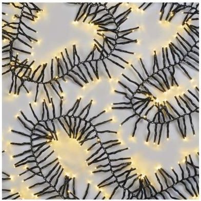 Lampki choinkowe LED Cluster, jeżyk, 960LED 7,2m, ciepła biel, 64 programów, IP44 barwa światła: ciepła biel|długość przewodu: 5 m|do wysokości choinki: nie dotyczy|funkcje: 8 trybów (multifunkcja)|ilość LED: 960|kolor przewodów: czarny|kształt: nie dotyczy|materiał: PVC|moc: 8,4 W|możliwość …