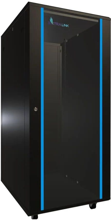 Extralink 27U 600x800 Czarna | Szafa rack stojąca .lndMain .lnd_text.lnd_col-8 { padding: 0 20px; } @media only screen and (max-width: 720px) { .lndMain { padding: 0; } .lndMain img { width: 75%; } } • Kod produkcyjny: EX.11366 • Przeznaczenie: Szafa rackowa firmy Extralink jest przeznaczona do montażu naściennego w biurach, serwerowniach sieciowych oraz pomieszczeniach sterowania instalacjami CCTV. • Materiał: Wykonana z walcowanej na zimno blachy stalowej, co gwarantuje jej trwałość i solidność. • Drzwi: Przednie drzwi są wyposażone w szybę ze szkła hartowanego i mogą otwierać się zarówno na lewą, jak i prawą stronę. • Wysokość: Szafa posiada przejrzyste oznaczenie wysokości, wynoszącej 27U (unit). Całkowita wysokość szafy to 132 cm. • Demontaż ścian bocznych: Zatrzaski na ścianach bocznych umożliwiają łatwy demontaż. • Kablowanie: W dolnym panelu szafy umieszczono 4 przepusty do wyciągania kabli, dzięki temu zmniejsza się ryzyko ich ściśnięcia czy splątania. Na suficie szafy przygotowane są 4 miejsca na zainstalowanie wentylatorów w celu lepszego chłodzenia urządzeń oraz dodatkowy przepust do wyciągania kabli. Główne cechy: • Drzwi przednie z hartowanego szkła z małym zamkiem. • Możliwość otwierania drzwi na lewą lub prawą stronę. • Znakomite wzornictwo, precyzyjne wymiary, staranne wykonanie. • Regulowane stopy, kółka przystosowane do dużych obciążeń. • Regulowane wymiary wejść kablowych na pokrywę górną i płytę dolną. • Wydajne i niezawodne połączenie korpusu za pomocą zestawu do łączenia szeregowego. • Zdejmowane panele boczne ułatwiające konserwację. • Kolor: Czarny. • Maksymalna waga: 1000 kg. • Materiały: Szkło, Metal, Stal nierdzewna. Szafa rackowa stojąca Extralink 27U w kolorze czarnym łączy w sobie funkcjonalność z nowoczesnym designem. Jej solidna konstrukcja oraz hartowane szkło w drzwiach sprawiają, że doskonale wpasuje się w każde wnętrze, jednocześnie zapewniając bezpieczne przechowywanie sprzętu sieciowego. Sprawdź akcesoria