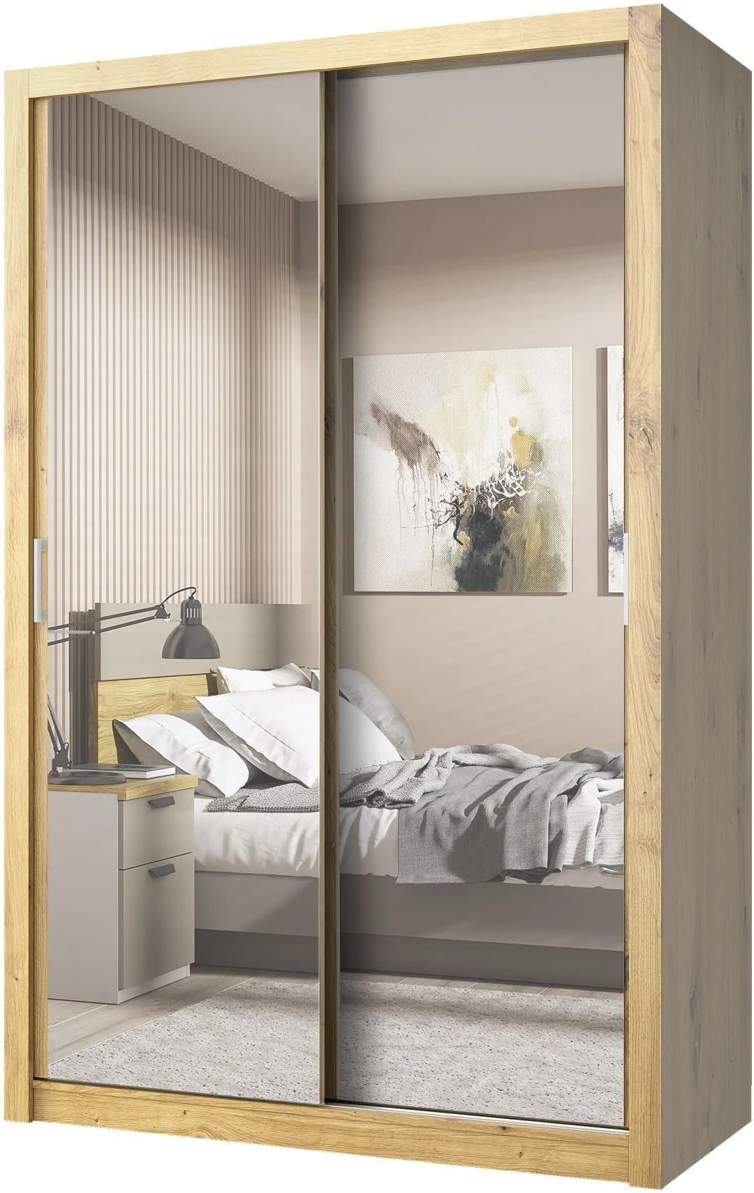 Szafa przesuwna Milan 150x216 cm dąb artisan z podwójnym lustrem to wyraz starannego połączenia nowoczesnej funkcjonalności z efektowną formą, która doskonale dopełni wnętrza urządzone w stylu glamour, skandynawskim, art déco oraz nowoczesnym. Fronty w całości pokryte lustrzaną taflą optycznie …