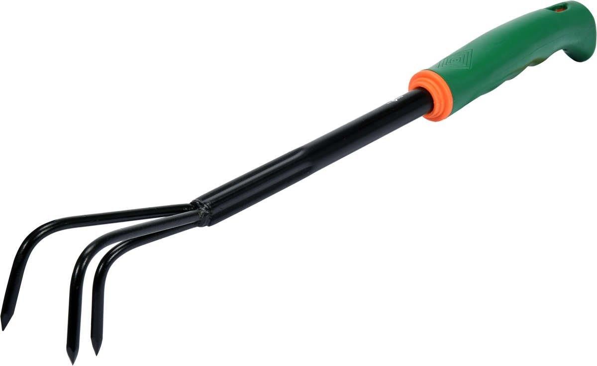Pazurki ogrodnicze Stalowe pazurkami z trzema zębami o szerokości części roboczej 55 mm. Osadzone na krótkim trzonku z wygodną rękojeścią. Przeznaczone do prac porządkowych i ogrodowych, m.in. do spulchniania, rozdrabniania gleby, pielenia, napowietrzania oraz pielęgnacji gęsto rosnących roślin. Cechy produktu: długość całkowita [cm]: 39.5 ilość zębów: 3 szerokość robocza [cm]: 5.5 rodzaj trzonka: tworzywo sztuczne materiał części roboczej: stal wykończenie części roboczej: czerniona materiał trzonka: PVC