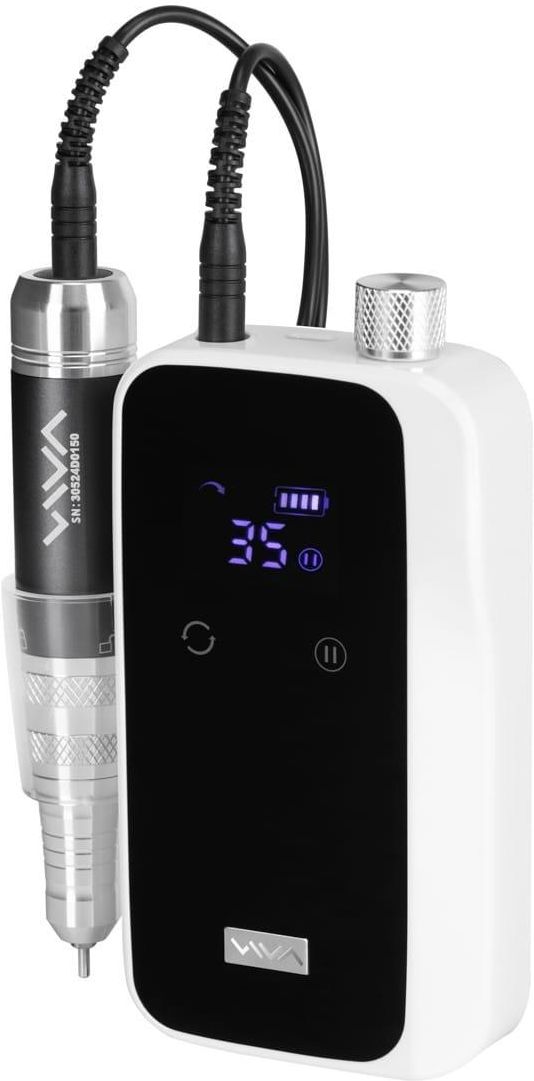 VIVA to marka oferująca nowoczesne frezarki do manicure, które łączą futurystyczny wygląd z łatwością obsługi. Lekkie i małe, zostały stworzone z myślą o profesjonalistach oraz pasjonatach stylizacji paznokci. Świetne urządzenie dla mobilnych stylistek paznokci Praktyczna frezarka akumulatorowa VIVA 305 to kompaktowe urządzenie, które doskonale sprawdzi się w pracy mobilnych stylistek paznokci, pozwalając na wygodną pracę w dowolnym miejscu. Znacznie ułatwia usuwanie pozostałości poprzednich stylizacji i usprawnia przygotowanie paznokci pod dalsze zabiegi. Pozwala na komfortową pracę nawet do 10 godzin na jednym ładowaniu. Praktyczna głowica z systemem Twist-Lock Ergonomiczna głowica dobrze układa się w dłoni i pozwala na komfortową, precyzyjną pracę. Dzięki odpowiedniemu wyważeniu i ograniczeniu drgań, ręka nie męczy się nadmiernie podczas użytkowania, co pozwala na długotrwałe wykonywanie zabiegów. Została wyposażona w prosty w obsłudze system Twist-Lock, co pozwala na szybką i łatwą wymianę frezów. Praca z urządzeniem jest dzięki temu wyjątkowo łatwa oraz intuicyjna, co zostanie docenione zarówno przez bardziej wymagających użytkowników, jak i osoby początkujące. Cyfrowy wyświetlacz i dotykowy panel sterowania Pokrętło pozwala regulować prędkość pracy głowicy do 35 000 obrotów na minutę, co umożliwia sprawne dostosowanie do indywidualnych potrzeb, a co za tym idzie komfortowe wykonywanie szerokiej gamy zabiegów. Dotykowy panel sterowania pozwala zatrzymać pracę urządzenia (funkcja pauzy), a także zmienić kierunek obrotów, co zapewnia pełną kontrolę nad frezarką i ułatwia dostosowanie jej działania do konkretnych usług. Prosty cyfrowy ekran wyświetla informacje o prędkości i kierunku obrotów, stanie baterii oraz włączeniu pauzy. Funkcjonalności dla komfortu użytkowania Frezarka działa stosunkowo cicho, co umożliwia komfortową pracę bez drażniącego hałasu. Jest to istotne zarówno dla osoby wykonującej zabieg, jak i dla klientów, którzy cenią sobie spokojną atmosferę. W trakcie pracy głowicę bezpiecznie można odwiesić dzięki wygodnemu plastikowemu uchwytowi, który można zamontować po boku urządzenia. Urządzenie wyposażone jest w wydajny akumulator dwuogniskowy o pojemności 2000 mAh, który pozwala na nieprzerwaną pracę przez nawet 8-10 godzin na jednym ładowaniu. Do zestawu dołączony jest praktyczny ceramiczny frez stożkowy, który zapewnia wszechstronność zastosowań i ułatwia wykonanie wielu różnych zabiegów. Estetyczne, kompaktowe urządzenie Frezarka jest poręczna i lekka, a jej minimalistyczna obudowa z tworzywa sztucznego w odcieniach bieli zapewnia trwałość oraz łatwość utrzymania urządzenia w czystości. Dzięki kompaktowym wymiarom i niewielkiej wadze, urządzenie można z łatwością przechowywać na małych przestrzeniach oraz wygodnie transportować, co jest szczególnie istotne dla osób świadczących usługi mobilne. Z tyłu obudowy znajduje się klips, który umożliwia wygodne przypięcie urządzenia do pasa lub innego miejsca. Dodatkowo, antypoślizgowe elementy na spodzie urządzenia zapewniają większą stabilność podczas użytkowania. W zestawie: baza frezarki, głowica, plastikowy uchwyt na głowicę, frez stożek, przewód do głowicy, kabel USB-C, instrukcja. Dane: Kolor: odcienie bieli i czerni Prędkość obrotowa: 35 000 RPM Głowica z mechanizmem Twist-Lock Zasilanie: akumulatorowe Moc: 36 W Gwarancja: 12 miesięcy