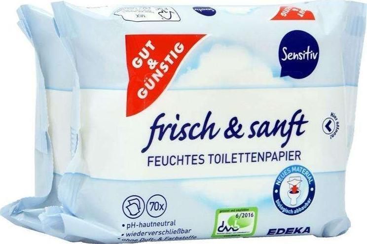 G&G Nawilżony Papier Toaletowy Sensitive 2-pack Producent: EDEKA ZENTRALE Stiftung & Co. KG Kod kreskowy: 4311501679944 Waga jednostkowa brutto: 0.3 kg Nawilżony Papier Toaletowy Sensitive to produkt stworzony z myślą o zapewnieniu najwyższej jakości i komfortu podczas codziennych potrzeb. Przeznaczony do higienicznej toalety, jest doskonałym wyborem zarówno w domu, jak i w podróży. Najważniejszą cechą, która wyróżnia ten nawilżony papier toaletowy, jest jego delikatność. Bez obecności alkoholu i olejków, jest przyjazny dla skóry, co czyni go odpowiednim nawet dla osób o wrażliwej skórze. Co więcej, papier ten jest łatwo rozpuszczalny w toalecie, co eliminuje obawy związane z utylizacją i dba o środowisko. Nawilżony Papier Toaletowy Sensitive to pewność, że Twoje codzienne potrzeby zostaną spełnione w najwyższy standard. Wybierając ten produkt, wybierasz nie tylko higienę, ale także dbałość o swoją skórę. Opakowanie zawiera 2 x 70 szt.