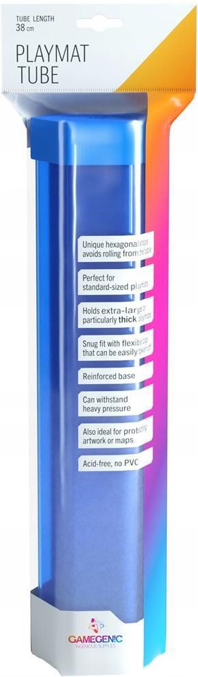Półprzezroczysta niebieska tuba na matę do gry CZYM JEST PLAYMAT TUBE? Rewolucja wśród tub na maty do gry! Przedstawiamy w pełni profesjonalne opakowanie na Twoją ulubioną matę. Innowacyjna Playmat Tube wyróżnia się wśród podobnych produktów dostępnych na rynku. Doświadczeni gracze z pewnością pokochają unikalny kształt tego pojemnika, zapobiegający "uciekaniu" tuby ze stołu. Playmat Tube została wykonana z wytrzymałego tworzywa PETG, który zapewni odporność nie tylko na mechaniczne uszkodzenia, ale także na ogrzewanie oraz krystalizację, która z czasem może wywoływać kruszenie się standardowego tworzywa PET. Antypoślizgowa silikonowa zawleczka zapobiega przypadkowemu otwarciu się tuby i nieplanowanemu przemieszczaniu się maty. Playmat Tube idealnie sprawdzi się jako pojemnik do przechowywania standardowych rozmiarów mat, jednak pomieści również wyjątkowo długie i grube maty. Jej wymiary to 75 x 385 mm. GAMEGENIC Wychodząc naprzeciw oczekiwaniom fanów, firma Gamegenic stworzyła linię akcesoriów dedykowanych graczom. Marka Gamegenic to szereg produktów najwyższej jakości z możliwością niespotykanej dotąd personalizacji.