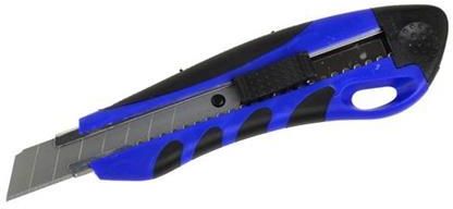 Nożyk do tapet plastikowy gumowany ostrze łamane 18mmNóż uniwersalnego zastosowania wyposażony w ostrze łamane 18mm.Nożyk wykonany z tworzywa sztucznego, rękojeść wyprofilowana pokryta antypoślizgową guma. Charakterystyka produktu: metalowa prowadnica ostrza wysuwane, łamane ostrze wyprofilowana, antypoślizgowa rękojeśćSpecyfikacja techniczna: Zastosowanie: do cięcia tapet, kartonów, taśm, kabli, wykładzin Długość narzędzia: 170 mm Szerokość ostrza: 18 mm Materiał wykonania ostrza: stal węglowa Informacje dodatkowe: ostrze łamane
