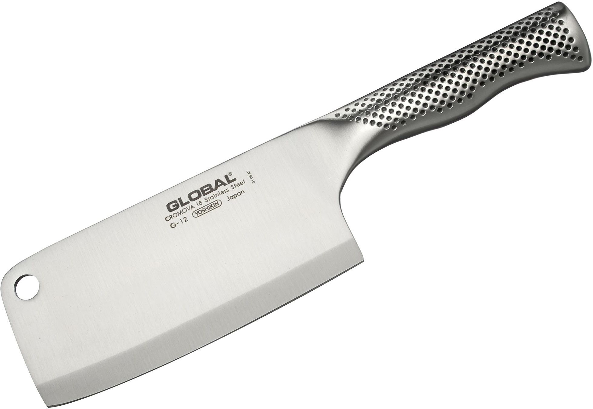 Tasak do mięsa 440 g 16 cm | Global G-12 Klasyczny, ciężki tasak rzeźniczy przeznaczony do siekania surowego mięsa. Można nim porąbać niewielkie kości, chrząstki lub stawy. Doskonale się też sprawdzi, kiedy trzeba rozłupać dynię, przeciąć pancerz homara albo podzielić mrożonkę. Ponieważ tasak jest …