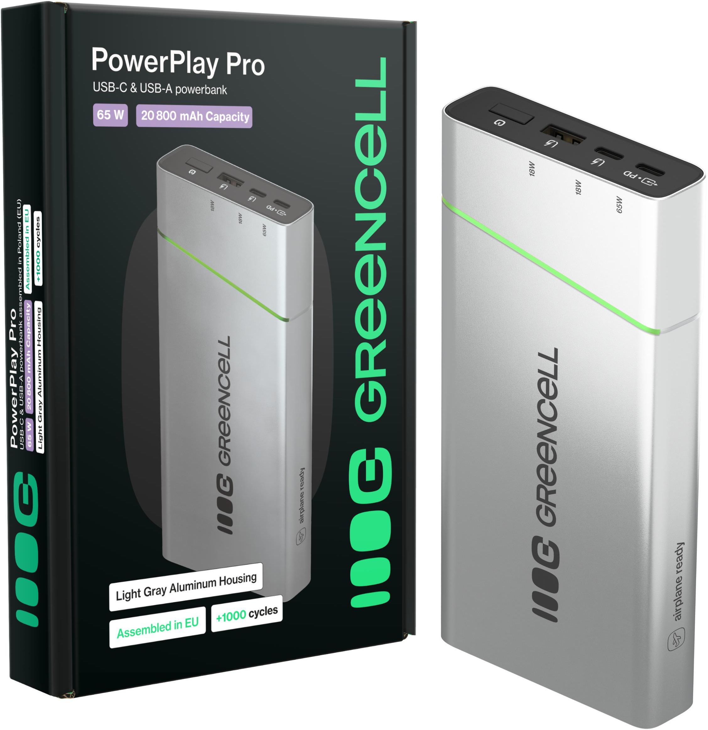 Powerbank Greencell PowerPlay Pro 20800mAh 65W - szybkie ładowanie, PD, Ultra Charge, produkcja w Polsce Wyprodukowany w Polsce, zaprojektowany na lata - 1000 cykli ładowania gwarantuje niezawodną pracę. 20800mAh zapewnia energię na długo - do 5 ładowań smartfona oraz zasilenie innych urządzeń. 65W …