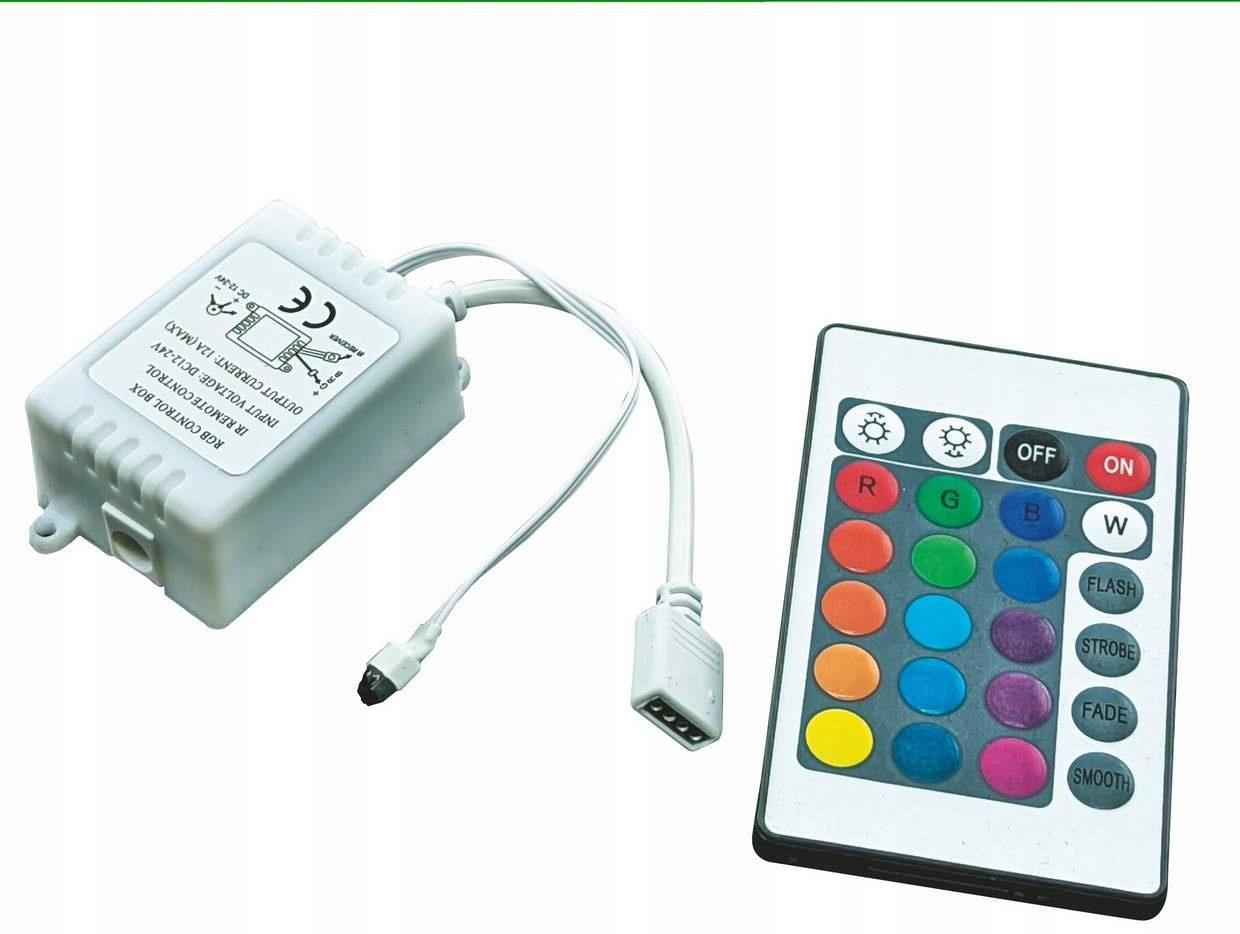 LED STRIP RGB CONTROLLER - Sterownik RGB KONTROLER LED RGB Z PILOTEM Napiecie nominalne [V]:: 12V/24V DC Klasa ochrony porażeniowej:: III Stopień ochrony IP:: IP20 Maksymalny prąd [A]:: 2/CH Kolor: biały Nadaje się do ściemniania:: tak Wymiar - Długość [mm]: 49 Wymiar - Szerokość [mm]:: 35 Wymiar - Wysokość [mm]:: 22 Zasięg [m]:: 20 Znaki zgodności:: CE RoHS: tak