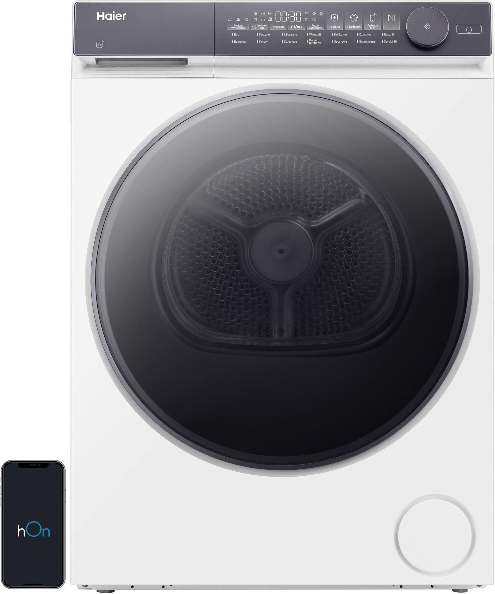 Haier MHDE80-D367TU1 Suszarka X7 SLIM Suszarka z pompą ciepła pozwala zmniejszyć zużycie energii, obniżając tym samym Twoje rachunki za prąd. Dzięki wykorzystaniu raz nagrzanego powietrza do suszenia ubrań urządzenie działa efektywnie, chroniąc jednocześnie tkaniny przed wysoką temperaturą i oferując im dłuższą trwałość. Suche ubrania w pół godziny Potrzebujesz szybko wysuszyć ulubioną koszulę lub lekko wilgotne ubrania? Cykl Superszybki 30' umożliwia błyskawiczne suszenie w zaledwie 30 minut. To polecana funkcja, gdy liczy się czas. Świetnie sprawdza się w codziennych sytuacjach, kiedy chcesz szybko założyć świeże i suche rzeczy. i-Time: dobierz czas suszenia Nie musisz już dopasowywać się do suszarki – teraz to ona dopasuje się do Ciebie. Dzięki funkcji i-Time z łatwością zmienisz czas trwania cyklu – możesz go skrócić lub wydłużyć w zależności od tego, ile masz czasu i jak bardzo mokre są Twoje ubrania. Co ważne, modyfikację wprowadzisz nawet w trakcie prania, w wygodnych odstępach co 5 minut. Jedno kliknięcie wystarczy, by zyskać pełną kontrolę nad procesem suszenia. Suszarka Slim 8 kg Suszarka typu Slim łączy kompaktowe wymiary z dużą pojemnością bębna – aż 8 kg, dzięki czemu świetnie sprawdzi się zarówno w mniejszych mieszkaniach, jak i w większych gospodarstwach domowych. Jej wymiary wynoszą 85 cm wysokości, 59,5 cm szerokości oraz 51 cm głębokości (przy głębokości samego korpusu 46,5 cm), dzięki czemu bez problemu zmieści się w mniejszych przestrzeniach, zachowując pełną funkcjonalność. Jednocześnie oferuje komfort suszenia dużych załadunków. Zdalne sterowanie suszarką Wybierz odpowiedni program suszenia, korzystając z możliwości, jakie daje Ci aplikacja hOn. W zależności od wilgotności prania, wielkości wsadu, typu odzieży i rodzaju materiałów, aplikacja pomoże Ci dobrać najlepszy spośród ponad 60 dostępnych cykli. Wyśle Ci również powiadomienie na telefon, gdy najdelikatniejsze i najlżejsze ubrania będą już suche, umożliwiając ich wcześniejsze wyjęcie.