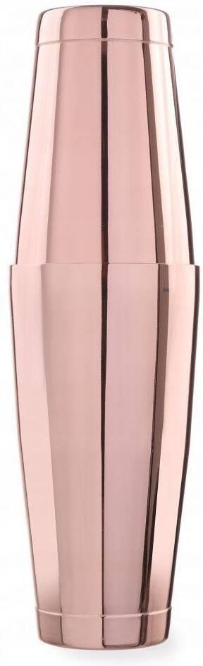 Shaker do koktajli Tin Tin 2- częściowy. Wykonany ze stali nierdzewnej pokrytej miedzią. Pojemność: 2 kubki 0,6 i 0,8l. Średnica 9 cm. Wysokość: 17,4 cm. Nie można myć w zmywarkach.