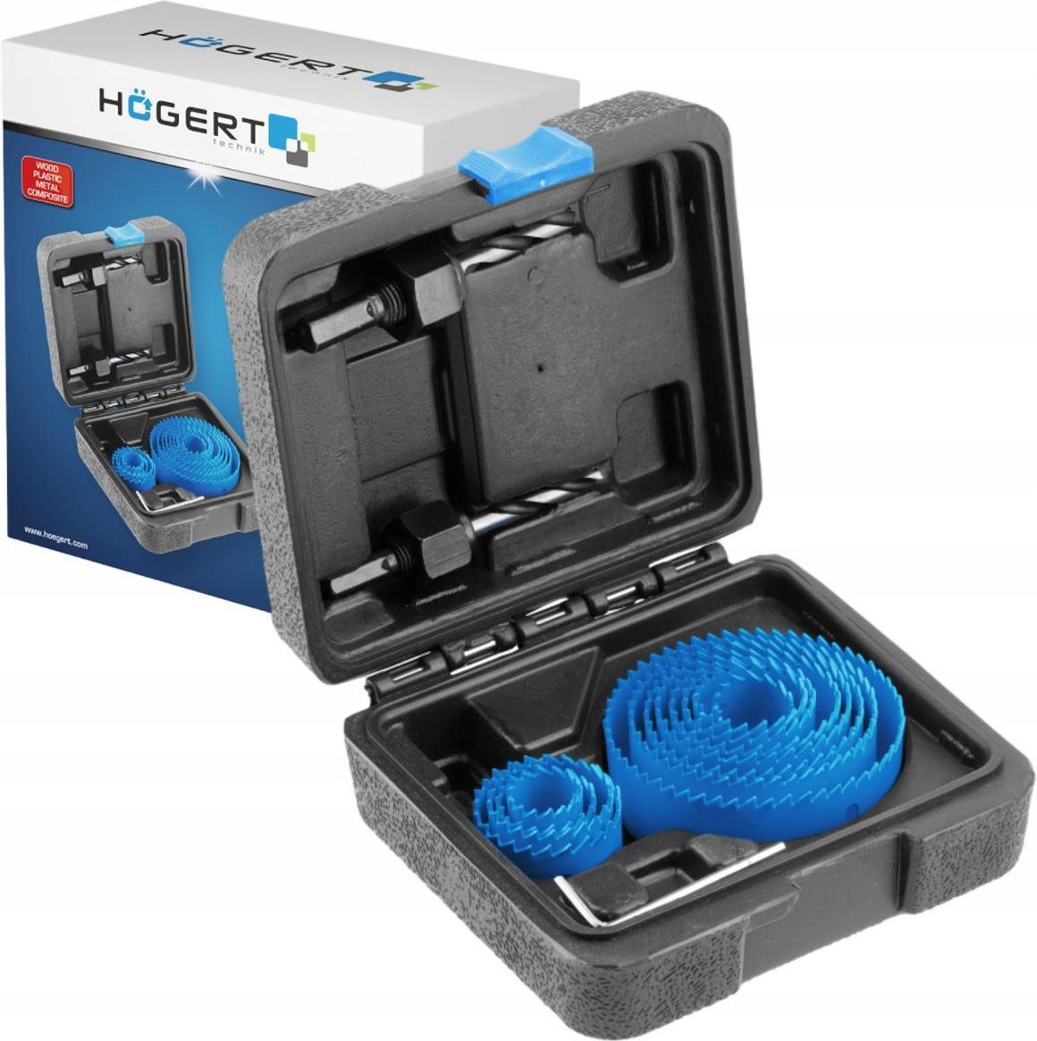 ZESTAW OTWORNIC ZE STALI WĘGLOWEJ 14CZ. HOGERT HT6D464 Zestaw otwornic składający się z 14 sztuk, zapakowany w solidne plastikowe pudełko, stanowi kompleksowe rozwiązanie dla profesjonalistów. Otwornice te zostały zaprojektowane z myślą o wszechstronności – są idealne do wiercenia w różnych materiałach takich jak drewno, plastik czy kompozyt. Precyzyjne wykonanie każdej otwornicy zapewnia czyste i dokładne otwory, bez względu na rodzaj obrabianego materiału. Parametry Zestaw wyposażony w 14 otwornic; rozmiary otwornic: 19, 22 , 25, 28.5, 32, 35, 38, 45, 50, 57, 63, 75 mm; 2 wiertła prowadzące 8 i 9,5 mm idealne do wiercenia w drewnie; plastiku oraz kompozytach; zapakowane w praktyczne plastikowe; pudełko umożliwiające bezpieczne przechowywanie i transport otwornic; precyzyjne wykonanie otwornic zapewnia dokładne i czyste otwory, minimalizując ryzyko uszkodzenia obrabianych materiałów. ZDJĘCIA PRODUKTU