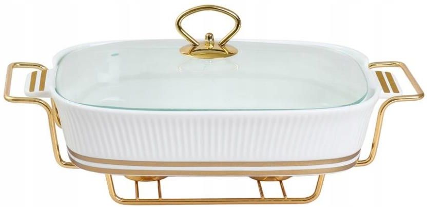 Homedelux Podgrzewacz Naczynie Żaroodporne Ceramiczne Prostokątne Białe Złote Katowice
