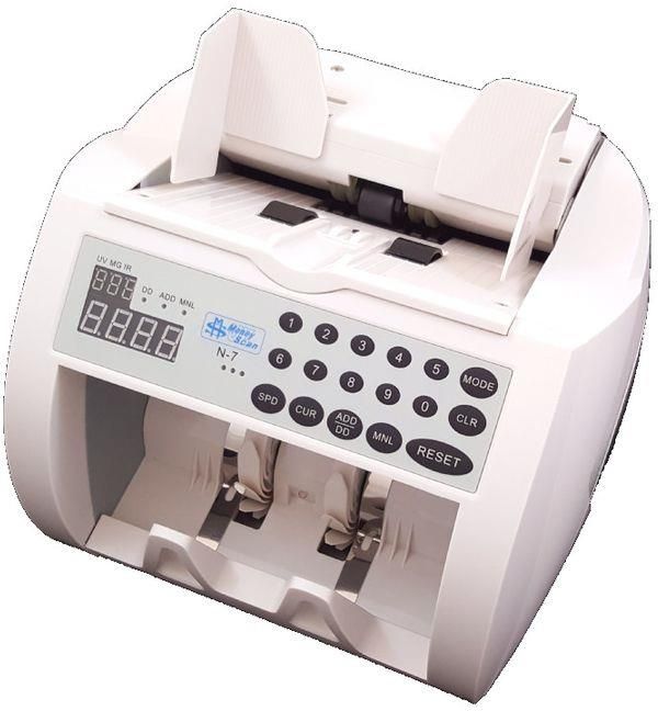Liczarka ilościowa, cechująca się wysoką jakością, wydajnością i niezawodnością przez lata. Sprawdza się zarówno w bankach, kantorach wymiany walut, biurach notarialnych, jak i dużych sklepach detalicznych. Posiada system weryfikacji 8 walut i umożliwia przeliczanie pieniędzy w 3 prędkościach. Pracuje cicho, płynnie i bez zacinania. Selectic N-7 łączy nowoczesny wygląd z ergonomią. Posiada duży, LED-owy wyświetlacz i łatwą do użytku klawiaturę. To sprawia, że korzystanie z niej jest intuicyjne i możliwe już po minimalnym przeszkoleniu. Spośród dostępnych na rynku liczarek ilościowych wyróżnia się przede wszystkim wysoką jakością wykonania, która gwarantuje nawet 8 lat ciągłej pracy oraz niskimi kosztami eksploatacji - tanie części zamienne sprawiają, że jej serwisowanie jest niedrogie. Detekcje: UV, MG, DD (sprawdzanie długości i wysokości banknotów) Pojemność podajnika: 300 sztuk banknotów Pojemność odbiornika: 250 sztuk banknotów Szybkość liczenia: 800/1000/1500 banknotów na minutę Dostępne waluty: PLN, EUR, USD,CHF, GBP, JPY, HUF,BGN Wyświetlacz zewnętrzny Złącza: RS 232 Wymiary : 235 mm / 210 mm / 290 mm Ciężar: 6,5 kg Pobór energii: mniej niż 60W Zasilanie: 100-240V/ 50-60 Hz