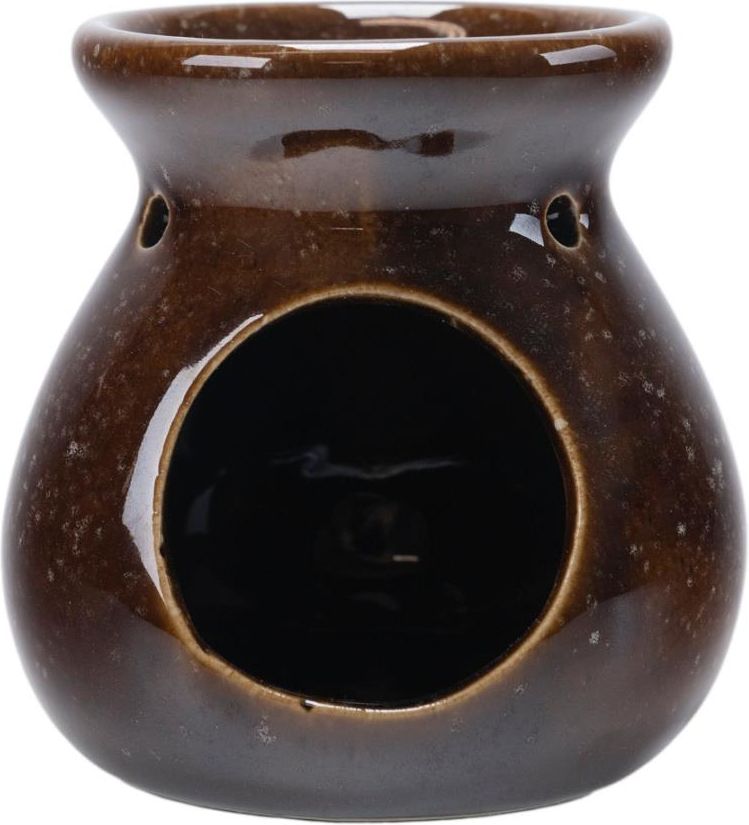 Kominek na wosk lub olejek zapachowy z serii Vesuvius, wykonany z ceramiki. Kominek jest koloru brązowego nakrapianego, błyszczącego imitującego marmur. Naczynie umożliwia rozpylenie zapachu wosku lub olejku zapachowego. Do użycia potrzebna jest świeczka typu tealight, którą umieszcza się w środku kominka. Wysokość kominka 10 cm. Kominek nie tylko spełnia funkcję użytkową, ale będzie również doskonałą dekoracją. Górna część imbryczka pełni funkcję pokrywki na miseczkę z woskiem. Idealnie sprawdzi się on zarówno w pomieszczeniach, jak i na balkonach, tarasach czy ogrodach. Modny i klimatyczny kominek będzie ozdobą, która umili Ci każdy wieczór. Wzór: 36008 brązowy Produkt 1 x kominek na wosk zapachowy Wymiary średnica górna 8 cm długość 10 cm wysokość 10 cm Materiał ceramika