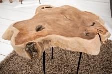 STOLIK KAWOWY WILD 40 CM TEAK Ten niezwykle interesujący stolik to idealne rozwiązanie do salonu urządzonego w stylu nowoczesnym oraz retro, który bez wątpienia dzięki swojej wyjątkowej formie przykuje uwagę każdego. Postawiony został na stabilnej czarnej metalowej smukłej trójnożnej podstawie. Rustykalny charakter umiejętnie podkreśla doskonałe jego wykonanie. Każdy blat wykonany jest ręcznie z litego drewna tekowego w kolorze naturalnym, który dzięki zachowaniu oryginalności słojów, sęków oraz naturalnej krawędzi drzewa wygląda zjawiskowo. Efekt końcowy połączenia wykrojonego blatu z ukształtowanymi naturalnymi krawędziami i czarnej metalowej podstawy jest fenomenalny sprawiając tym samym, że stolik ten idealnie wkomponuje się do każdego pomieszczenia, w którym delikatny kolor drewna doda mu ciepła oraz elegancji. Doskonale łączy współczesny design z naturalnym stylem, a jej geometryczny kształt nada charakteru wnętrzu stając się atrakcyjnym i bardzo uniwersalnym dodatkiem dekoracyjnym nowoczesnego eleganckiego i wyrafinowanego salonu. W całej serii WILD występują stoliki, komody, biurka, lampy, stoły, konsole, szafki nocne, regały, stoliki pod laptopa oraz szafki RTV o różnych podstawach, wymiarach i kolorach - patrz przedmioty powiązane. Produkt jest wykonany z surowców naturalnych, przez co może różnić się od prezentowanych zdjęć. Wszystkie przetarcia, szczeliny oraz nierówności są zamierzone. Każdy produkt jest przez to unikalny i oryginalny. Invicta Interior to niezawodny dostawca ekskluzywnych designerskich mebli i akcesoriów domowych. Jest to dynamiczna i doświadczona firma z wieloletnimi międzynarodowymi kontaktami i stale poszukującą nowych produktów i innowacyjnych pomysłów. Dojrzała ogólna koncepcja firmy pozwala zaoferować klientom duży wybór nowoczesnych i klasycznych mebli o wyjątkowej jakości w rozsądnych cenach. Invicta Interior monitoruje wszystkie aktualne trendy w branży meblowej, dlatego klienci zawsze otrzymują najnowsze i najwyższej jakości designerskie meble.