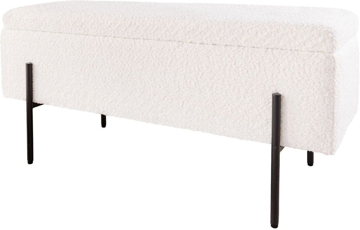 ŁAWKA LOFT 100X35 CM BOUCLE BIAŁY Ławka LOFT to niezwykle funkcjonalne rozwiązanie pasujące do salonu, sypialni czy nawet przedpokoju. Jej podłużne praktyczne siedzisko otapicerowano modną tkaniną boucle w kolorze białym, który idealnie odnajduje się w stylu nowoczesnym. Siedzisko ławki wyposażone zostało w wewnętrzy praktyczny pojemny schowek służący do przechowywania najpotrzebniejszych rzeczy. Całość mebla została osadzona na stabilnej metalowej podstawie malowanej proszkowo w kolorze czarnym. Dodatkowym atutem bez wątpienia jest jej forma, która wspiera odpowiednio sylwetkę siedzącego podczas użytkowania. Ławkę zaprojektowano oraz wykonano z wysokiej jakości materiałów, tak aby nadać wnętrzu nowoczesnego oraz eleganckiego wyglądu, tym samym zapewniając niesamowity komfort oraz wygodne miejsce do siedzenia. W serii LOFT występują również ławki, hokery, biurka, krzesła, stoliki kawowe oraz stoły w różnych wymiarach oraz kolorach - patrz produkty powiązane. Invicta Interior to niezawodny dostawca ekskluzywnych designerskich mebli i akcesoriów domowych. Jest to dynamiczna i doświadczona firma z wieloletnimi międzynarodowymi kontaktami i stale poszukującą nowych produktów i innowacyjnych pomysłów. Dojrzała ogólna koncepcja firmy pozwala zaoferować klientom duży wybór nowoczesnych i klasycznych mebli o wyjątkowej jakości w rozsądnych cenach. Invicta Interior monitoruje wszystkie aktualne trendy w branży meblowej, dlatego klienci zawsze otrzymują najnowsze i najwyższej jakości designerskie meble.
