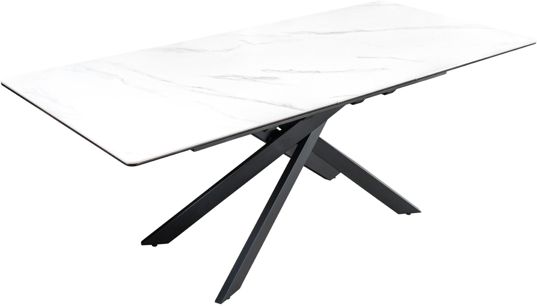 STÓŁ ROZKŁADANY ALPINE 160-200X89,5 CM CERAMICZNY BIAŁY Stół ALPINE znakomicie sprawdzi się w dużych, nowoczesnych pomieszczeniach jako stół do jadalni i salonu w stylu klasycznym oraz nowoczesnym. Gdzie dzięki swojej okazałej formie doda wnętrzu charakteru oraz niesamowitej elegancji, jego głównym elementem jest blat o grubości 2,4 cm wykonany z płyty MDF i ceramiki. Wyróżnia się on między innymi swoją wyrazistością poprzez zastosowanie w nim dekoracji w formie białego marmuru, którego elegancką kolorystykę dopełnia charakterystyczna nitka w kolorze ciemnym. Stół zawiera automatyczne przedłużenie znajdujące się bezpośrednio w schowku pod blatem, a jego możliwość rozłożenia sprawia, że w łatwy i szybki sposób dostosuje się rozmiar stołu do liczby gości. Mebel został osadzony na solidnej czarnej metalowej podstawie w kształcie pająka tak, aby ułożenia krzeseł podczas użytkowania nie stanowiły problemu. Efekt końcowy połączenia blatu oraz podstawy utrzymanej w czarnej tonacji jest fenomenalny co sprawia, że całość mebla idealnie sprawdzi się w salonach oraz jadalniach urządzonych w stylu klasycznym, nowoczesnym, ale również i w industrialnym. W serii ALPINE występują również stoły, krzesła, krzesła obrotowe, szafki RTV, komody, stoliki kawowe oraz biurka w różnych wielkościach oraz kolorach. Invicta Interior to niezawodny dostawca ekskluzywnych designerskich mebli i akcesoriów domowych. Jest to dynamiczna i doświadczona firma z wieloletnimi międzynarodowymi kontaktami i stale poszukującą nowych produktów i innowacyjnych pomysłów. Dojrzała ogólna koncepcja firmy pozwala zaoferować klientom duży wybór nowoczesnych i klasycznych mebli o wyjątkowej jakości w rozsądnych cenach. Invicta Interior monitoruje wszystkie aktualne trendy w branży meblowej, dlatego klienci zawsze otrzymują najnowsze i najwyższej jakości designerskie meble.