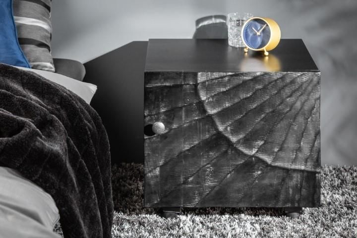 SZAFKA NOCNA SCORPION Szafka nocna Scorpion to mebel wykonany z lakierowanego drewna mango. Poręczna, zgrabna szafka nocna, wyposażona w jedną zamykaną szafkę. Stanowi doskonałe wykończenie Twojej sypialni. Produkt jest wykonany z surowców naturalnych, przez co może różnić się od prezentowanych zdjęć. Wszystkie przetarcia, szczeliny oraz nierówności są zamierzone. Każdy produkt jest przez to unikalny i oryginalny. Invicta Interior to niezawodny dostawca ekskluzywnych designerskich mebli i akcesoriów domowych. Jest to dynamiczna i doświadczona firma z wieloletnimi międzynarodowymi kontaktami i stale poszukującą nowych produktów i innowacyjnych pomysłów. Dojrzała ogólna koncepcja firmy pozwala zaoferować klientom duży wybór nowoczesnych i klasycznych mebli o wyjątkowej jakości w rozsądnych cenach. Invicta Interior monitoruje wszystkie aktualne trendy w branży meblowej, dlatego klienci zawsze otrzymują najnowsze i najwyższej jakości designerskie meble.
