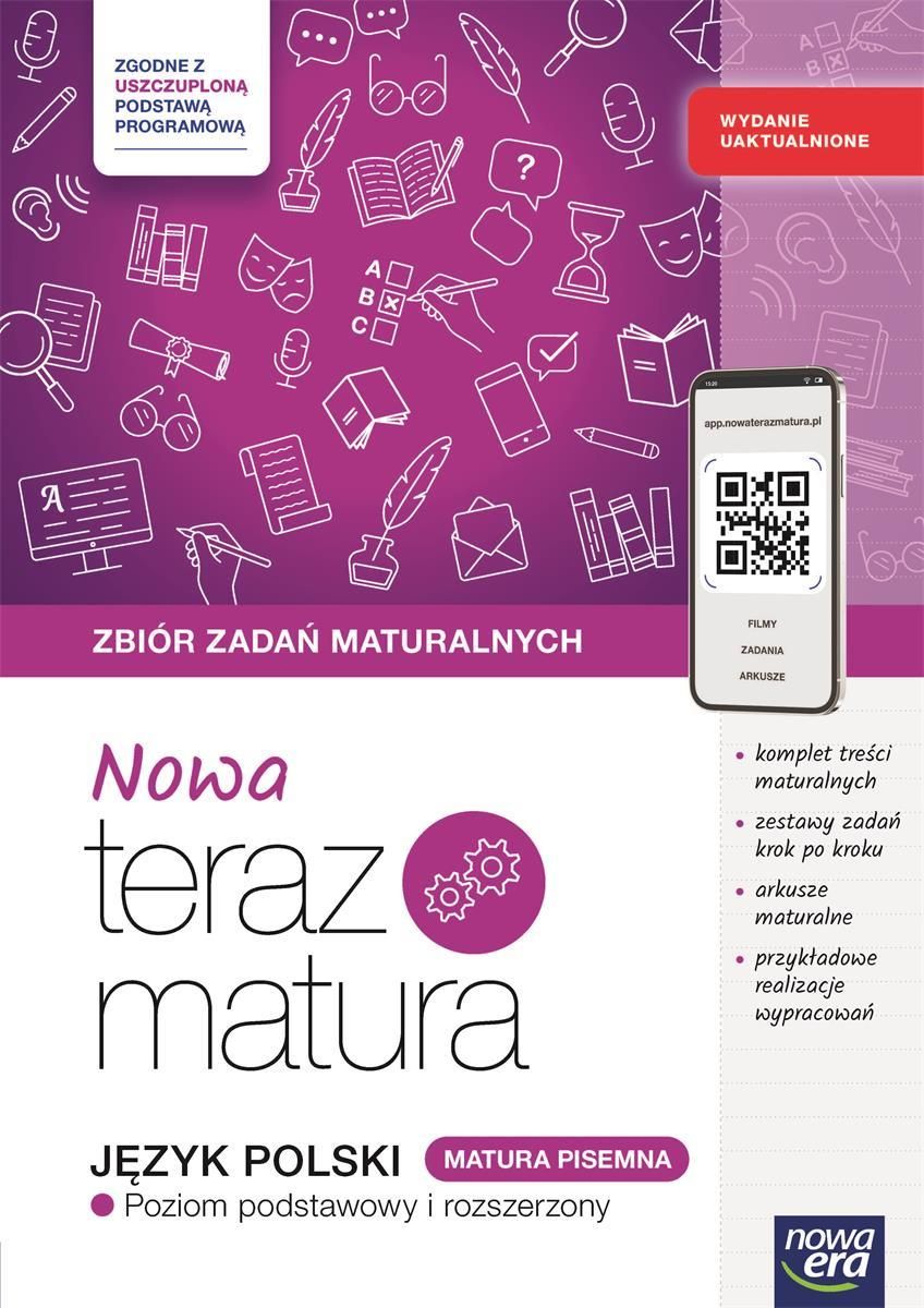 W trakcie przygotowań do matury z języka polskiego niezwykle ważne jest, aby korzystać z materiałów, które nie tylko ułatwiają naukę, ale także są dostosowane do aktualnych wymagań egzaminacyjnych. Zbiór zadań maturalnych na poziomie podstawowym i rozszerzonym, przeznaczony na rok 2025/26, oferuje kompleksowe wsparcie dla uczniów, pomagając im w skutecznym przyswajaniu wiedzy i umiejętności niezbędnych do zdania egzaminu. Publikacja ta została starannie uaktualniona i dostosowana do nowej podstawy programowej, co zapewnia adekwatność materiałów do aktualnych standardów edukacyjnych. Zawartość zbioru zadań Wewnątrz tego zbioru znajdziemy szereg różnorodnych ćwiczeń, które są zgodne z nową strukturą egzaminu. Oto kluczowe elementy, które wyróżniają tę publikację: Aktualizowane opisy egzaminu: Zawierają szczegółowy podział na grupy epok, co ułatwia zrozumienie kontekstu historycznoliterackiego. Test historycznoliteracki: Obejmuje zbiór zadań podzielonych na dwie grupy epok, co pozwala na systematyczne przyswajanie wiedzy. Wypracowania: Tematy wypracowań są wzbogacone o praktyczne wskazówki oraz przykładowe realizacje, co umożliwia lepsze przygotowanie do tego elementu egzaminu. Arkusze maturalne: Zgodne z obowiązującymi standardami, zawierają nowe zadania oraz tematy wypracowań, a także odpowiedzi i przykładowe realizacje, które stanowią cenne źródło wiedzy. Wsparcie ćwiczeniowe Oprócz zadań maturalnych, publikacja dostarcza rozbudowane wsparcie ćwiczeniowe. Uczniowie znajdą tutaj: Kompletną bazę ćwiczeniową: Różnorodne zadania, które przygotowują do egzaminu w sposób praktyczny i efektywny. Przykładowe realizacje zadań: Wskazówki dotyczące rozwiązywania zadań, co ułatwia zrozumienie materiału. Arkusze maturalne z odpowiedziami: Umożliwiają samodzielne sprawdzenie swoich umiejętności oraz postępów w nauce. Dodatkowe materiały cyfrowe W dobie cyfryzacji, dodatkowe zasoby online stanowią znaczące wsparcie w nauce. Korzystając z aplikacji dostępnej w serwisie app.nowaterazmatura.pl, uczniowie uzyskują dostęp do: Interaktywnego katalogu motywów literackich i kulturowych: Ułatwia on przyswajanie wiedzy oraz łączenie różnych kontekstów literackich. Tutoriali video: Przedstawiających kluczowe zagadnienia w przystępny sposób. Dodatkowych arkuszy maturalnych: Pozwalających na dalsze doskonalenie umiejętności. Publikacja nie tylko przygotowuje uczniów do egzaminu, ale także wspiera ich w rozwijaniu umiejętności krytycznego myślenia oraz analizy tekstów literackich. Warto zainwestować w ten zbiór, aby efektywnie przygotować się do matury i osiągnąć zamierzone cele edukacyjne. Zobacz, jak wygląda podręcznik Dowiedz się więcej o kursie NOWA Teraz matura! Dowiedz się więcej o aplikacji NOWA Teraz matura!